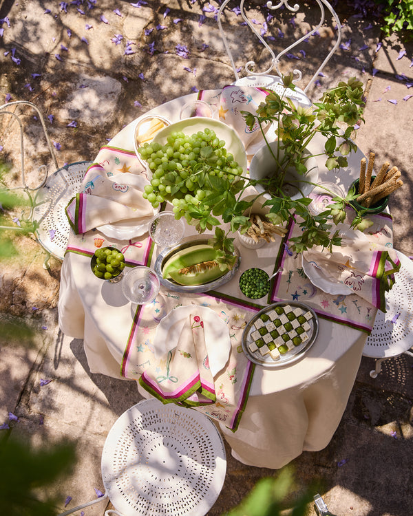 While you can absolutely let the vase shine on its own, I like to give the table a little height variation by adding another shorter vase with eucalyptus or acacia. Finish by swapping the fruit in a pedestal bowl for metallic ornaments, pinecones, or pine needle stems – and if you’re feeling particularly fancy, add in a table runner to keep it cohesive.