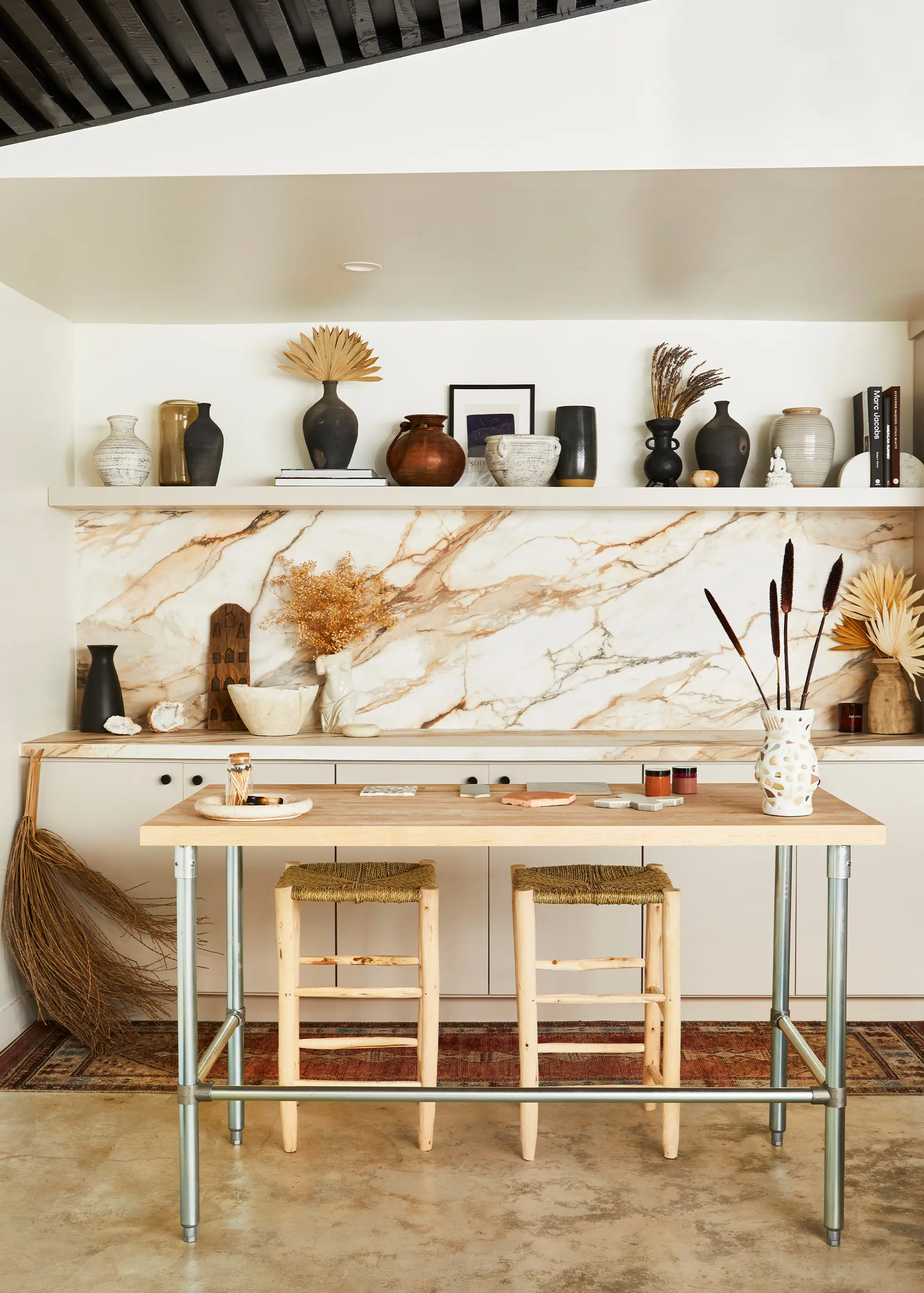 They also re-did the entire backyard and converted the old garage into a fully functioning studio that boasts high ceilings, an eclectic array of ceramics, and plenty of space for Hema to get creative.