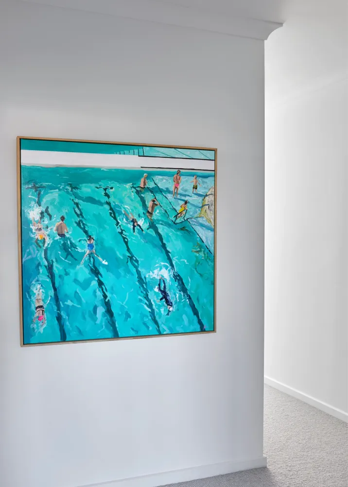 Artwork: The Toowoomba Gallery, Gina Debinski, Good Vibes and Pool Tides, 105 x 105cm, Acrylic on canvas.