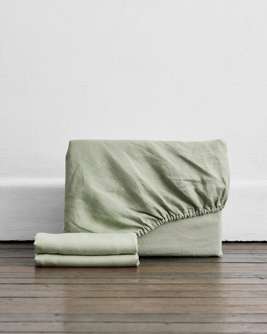 White 100% French Flax Linen Fitted Sheet Set Fitted Sheet Set 100% French Flax Linen