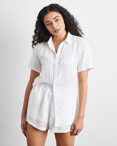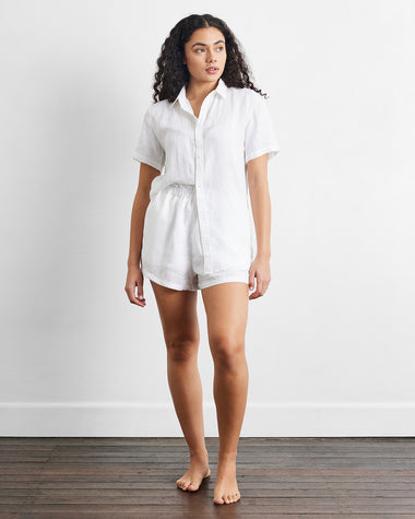 White 100% French Flax Linen Shorts White Shorts 100% French Flax Linen