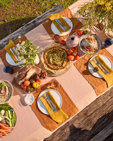 Lush layered throws, colourful napery and statement serveware to create your dream picnicscape–just add provisions and find the perfect patch of grass.