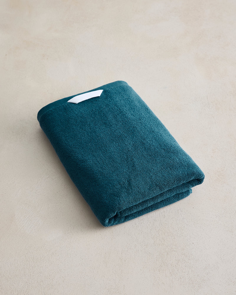 - Cotton Bath Towel packaged in a cotton storage sack.