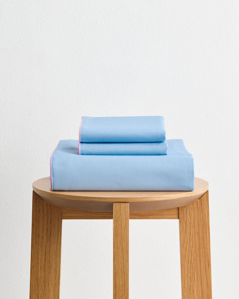 Aegean, Sky & Bubblegum Piped Duvet Cover Set 100% Organic Cotton
