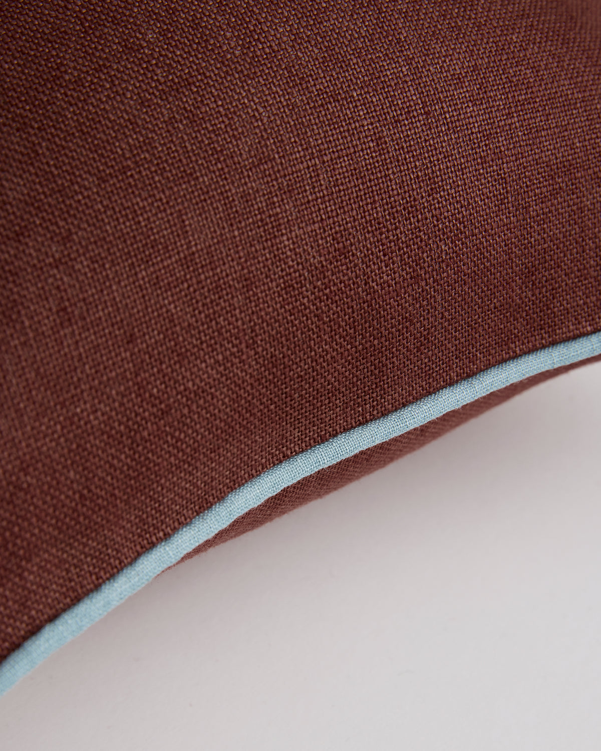 Cacao & Lagoon Piped Cushion Cover 100% French Flax Linen