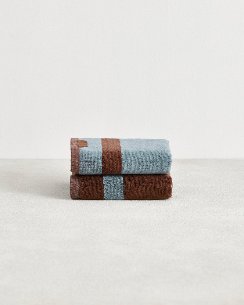 Cacao & Lagoon Two-Toned Hand Towels (Set of Two) 100% Cotton Terry