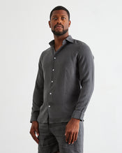 Charcoal Men's Long Sleeve Shirt 100% French Flax Linen