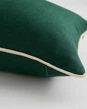 Forest & Crème Piped Lumbar Cushion Cover 100% French Flax Linen