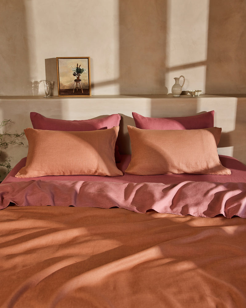 Hazelnut & Pink Clay Bedding Bundle 100% French Flax Linen