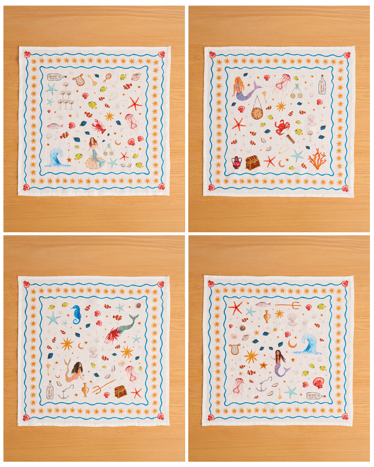 La Sirène Napkins (Set of Four) 100% French Flax Linen