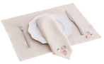 - 4 Les Fruits Placemats packaged in a linen storage sack.