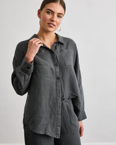 Lounge Long Sleeve Shirt in Charcoal 100% French Flax Linen