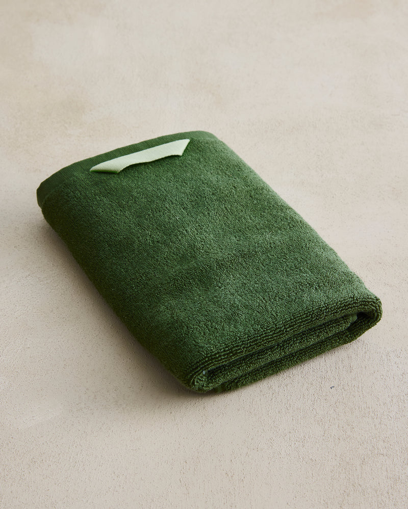 - Cotton Hand Towel packaged in a cotton storage sack.