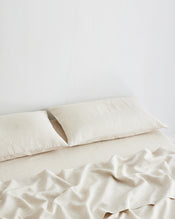 Oatmeal & White Stripe Fitted Sheet 100% French Flax Linen