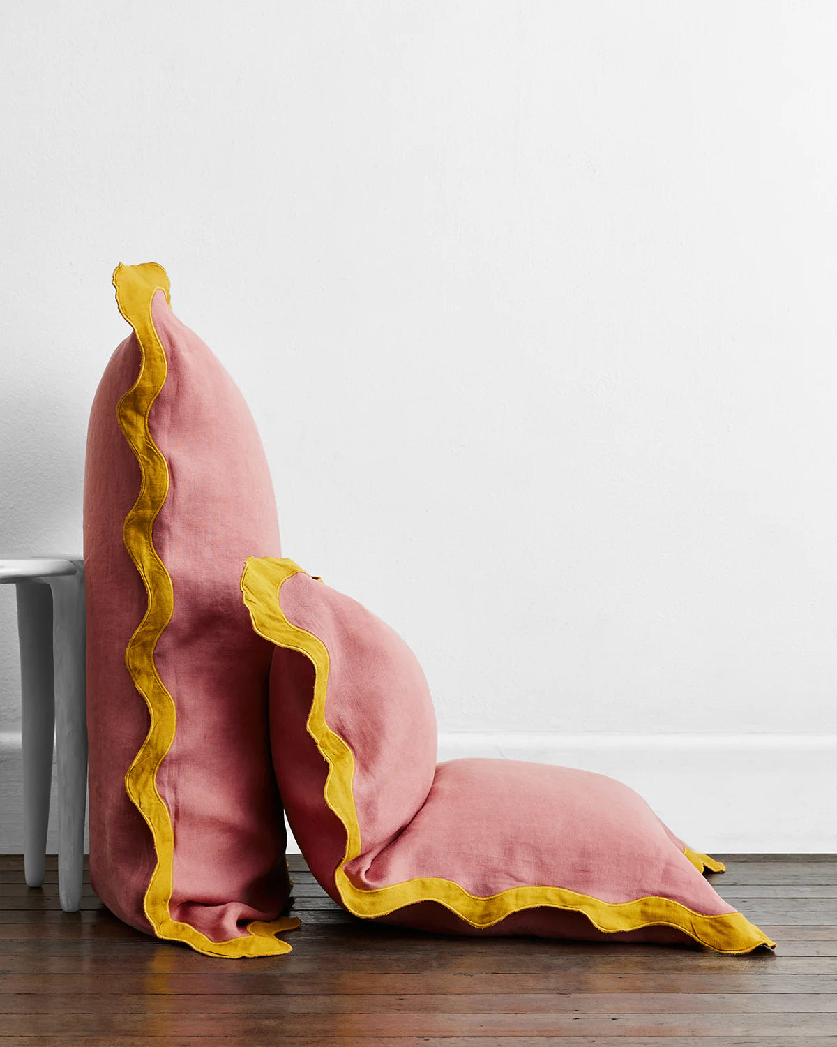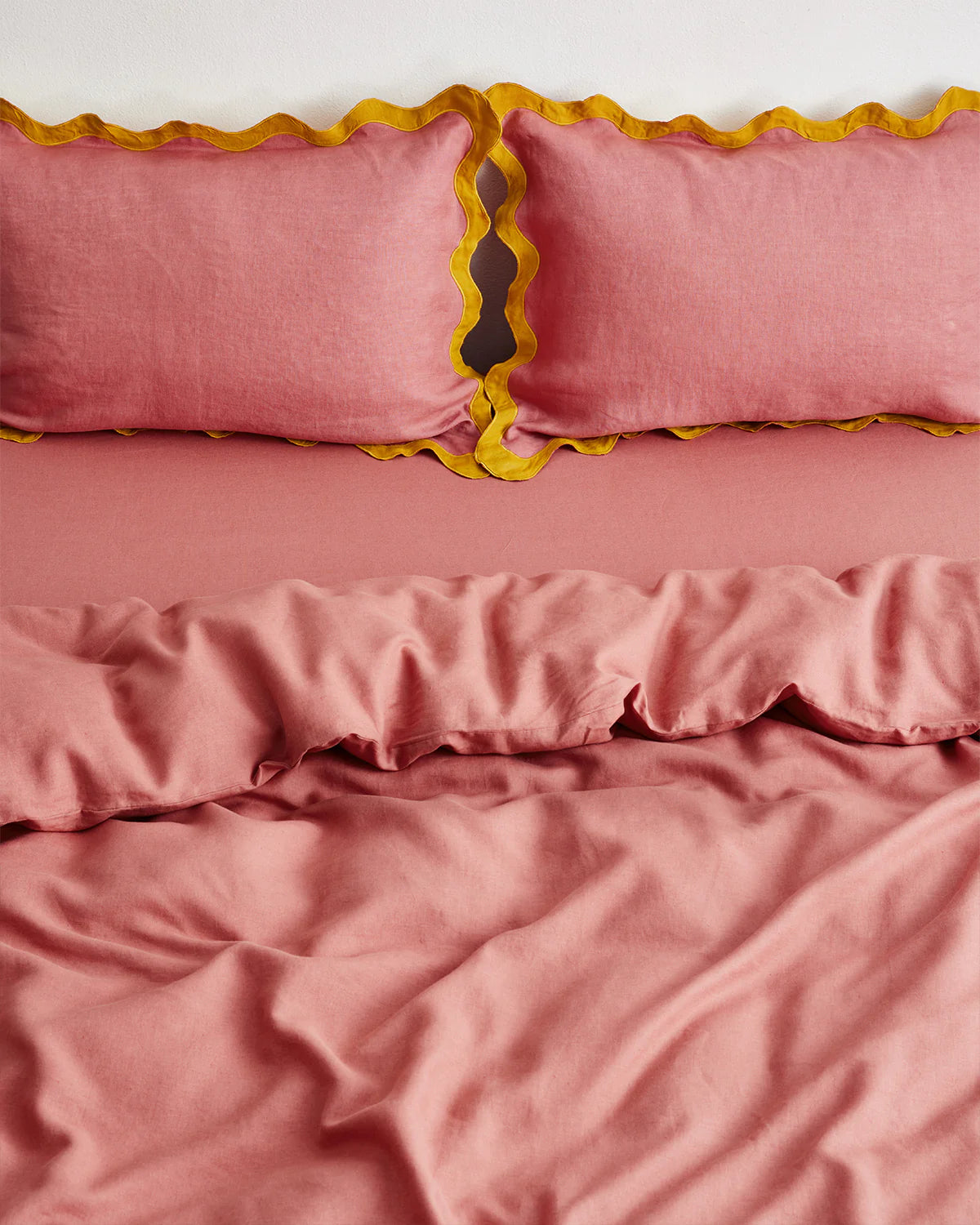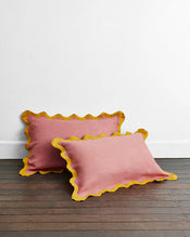 Pink Clay & Turmeric Scalloped Pillowcases (Set of Two) 100% French Flax Linen