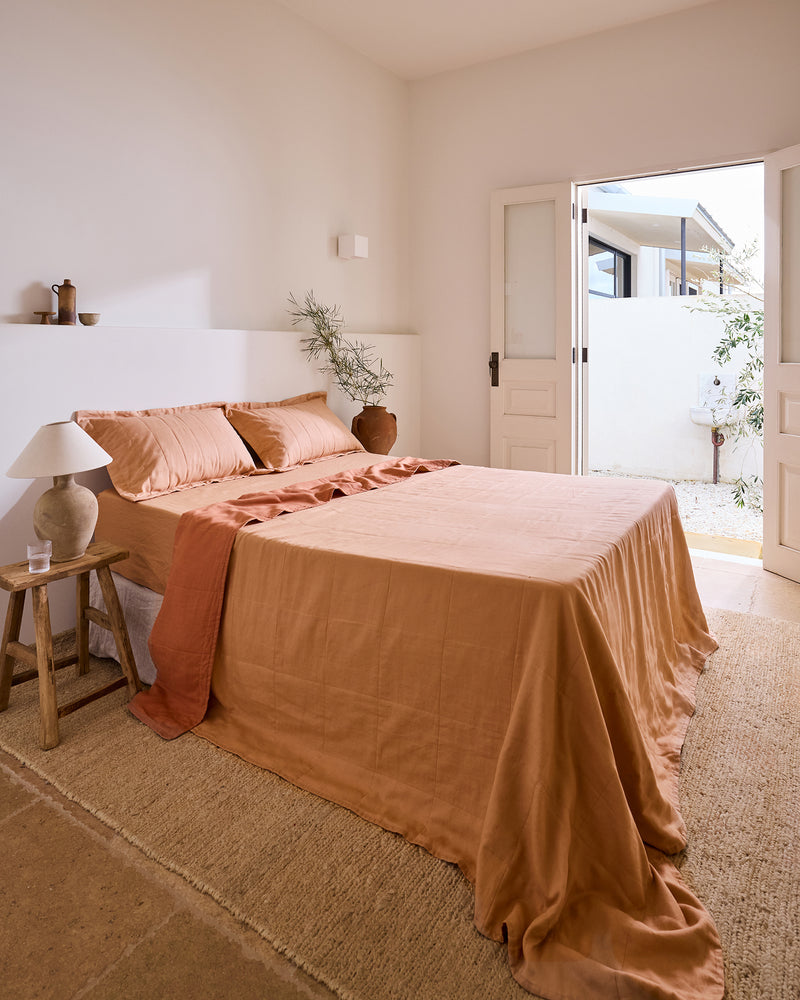 Terracotta & Hazelnut Two-Tone Quilt 100% French Flax Linen