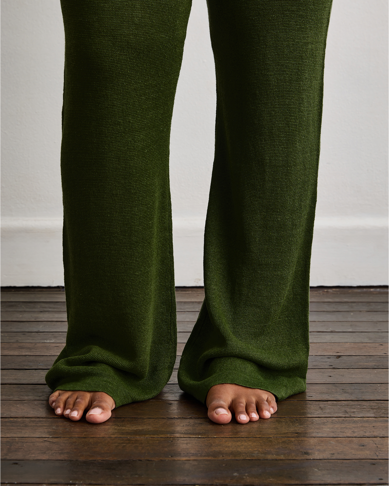 Veranda Linen Knit Pants in Olive 100% French Flax Linen