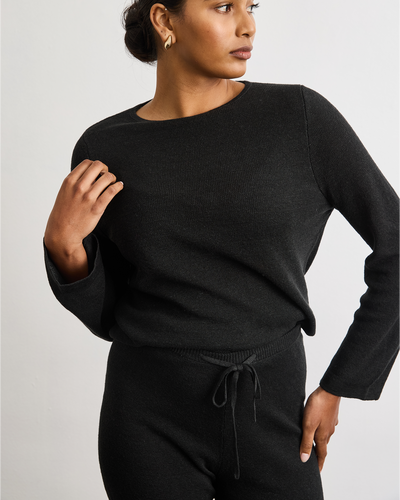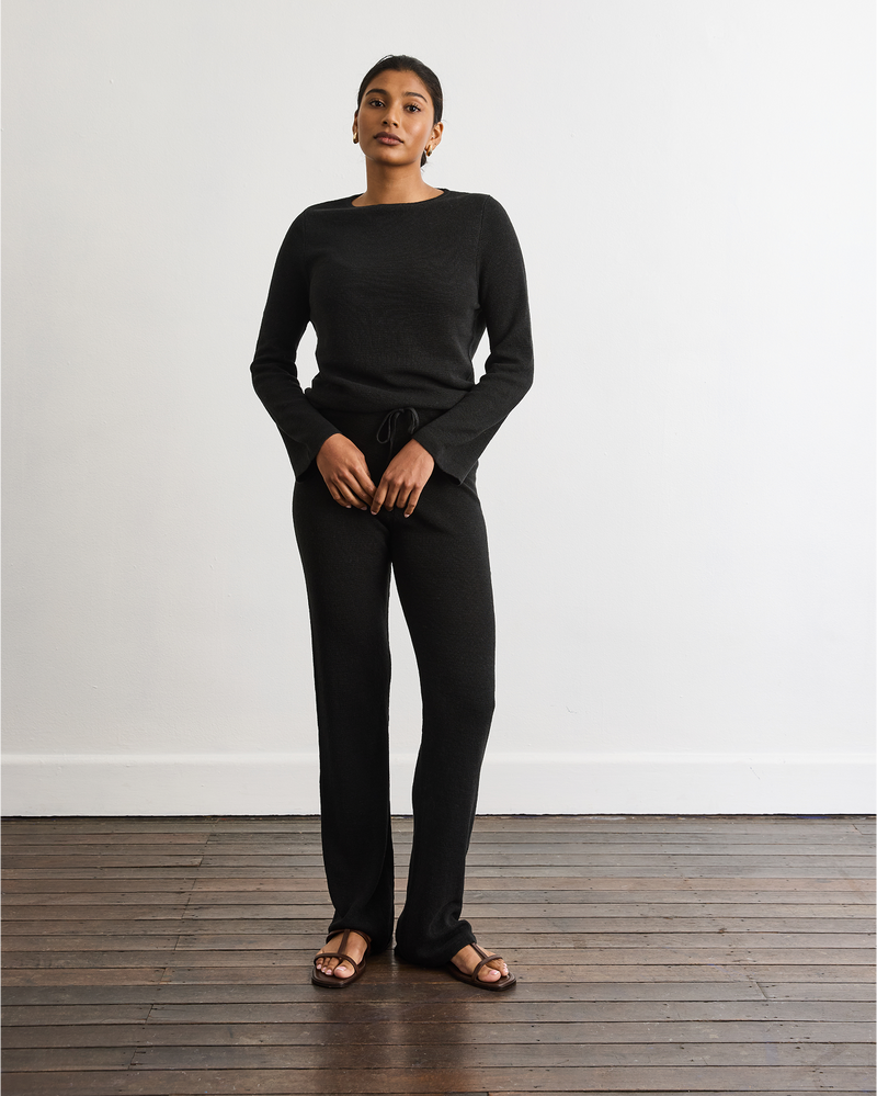 Veranda Linen Knit Sweater in Charcoal 100% French Flax Linen