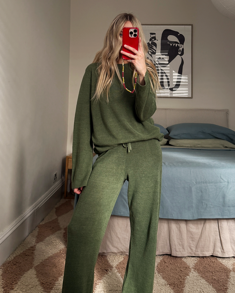 Veranda Linen Knit Sweater in Olive 100% French Flax Linen